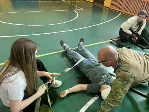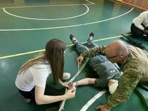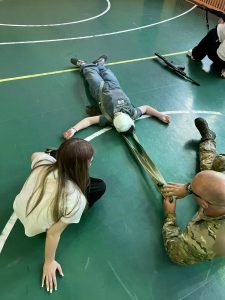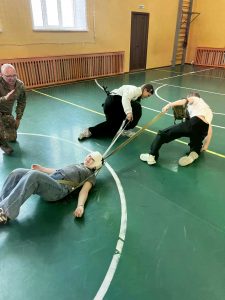 Параллельно Сергей Николаевич Елисеев, специалист по тактической медицине, провел для ребят жизненно важный урок. Юные «зарничники» осваивали алгоритмы оказания первой помощи в полевых условиях, учились быстро накладывать жгуты и повязки, а главное — отрабатывали эвакуацию «раненого» из опасной зоны. Атмосфера была максимально приближена к реальности: действовать нужно было быстро, слаженно и без паники.