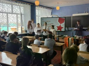 Ребята активно включились в разговор: они отвечали на вопросы, кто такой герой и кто может совершить подвиг, делились мыслями о патриотизме и рассуждали о значении поступка Александра Прохоренко для современной России. Гости мероприятия дополняли ответы учеников, помогая им глубже понять такие важные понятия, как долг, честь и готовность защищать свою страну. Живой диалог сделал встречу особенно душевной и искренней.