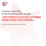 Открыта регистрация на участие в региональной акции «История военной службы моих родственников», посвященной Году защитника Отечества. Эта акция -возможность рассказать о боевом и трудовом пути своих близких, принять участие в сохранении исторической памяти и выразить благодарность за их службу.