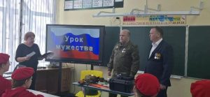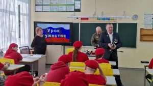 В Палимовской школе прошло значимое патриотическое мероприятие — Урок Мужества. Почетными гостями стали участники специальной военной операции, которые сегодня посвящают себя воспитанию молодежи и поддержке ветеранов: Олег Александрович Латышев, социальный координатор фонда «Защитники Отечества», и Михаил Игоревич Демидов, начальник штаба местного отделения «ЮНАРМИЯ» Бузулукского района.